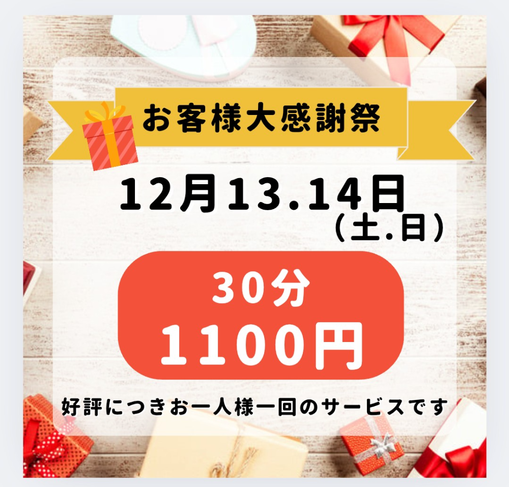 皆様のおかげで、フェイシャルエステコースが12月で3周年を迎えることができました❗️『全コース30%off』にてご案内いたします✨乾燥の気になる方、お肌悩みのある方、お久しぶりに受けたい方、この機会にぜひお待ちしております。※予約制(当日予約可)