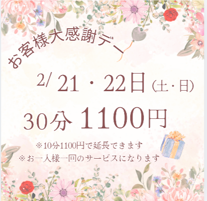 ボディコース、足つぼコースとの組み合わせの施術もできます。10分1100円で延長もできます。ご予約お待ちしております。※お一人様一回のサービスとなります。